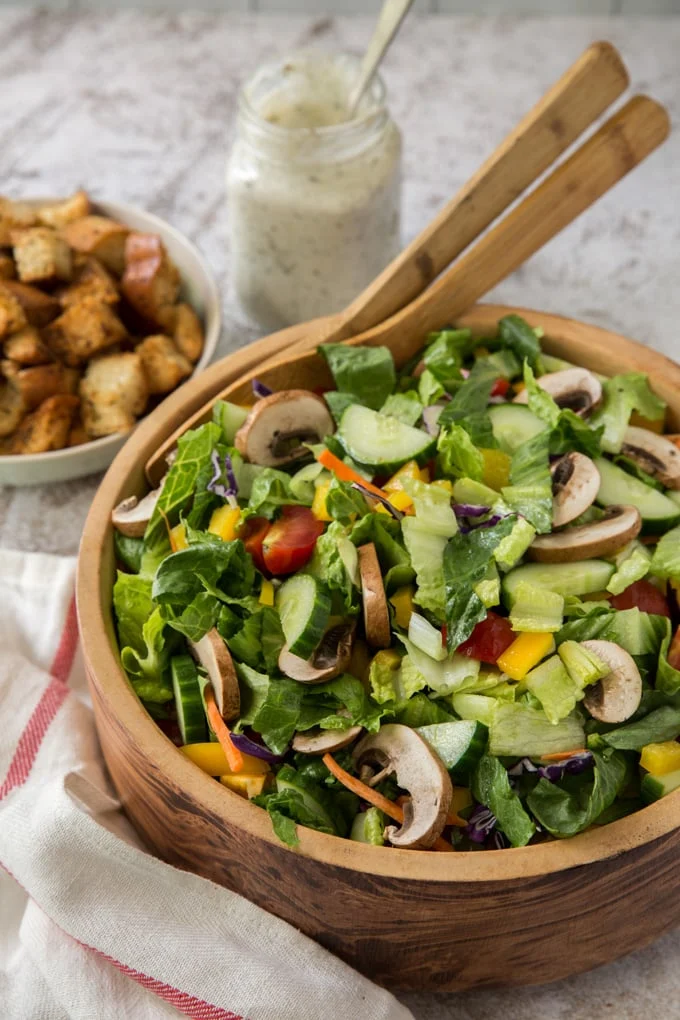 • Poukładaj umyte i pokrojone warzywa w kolorowy wieniec wokół Sosu Ranch jak na zdjęciu.