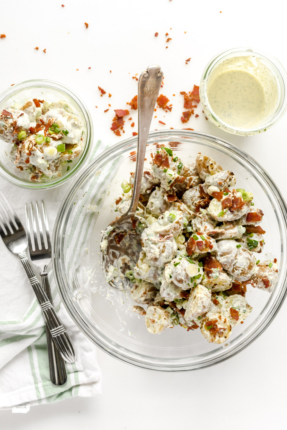 • Kiedy ziemniaki ostygną, dodaj więcej sosu Ranch oraz zieloną cebulkę